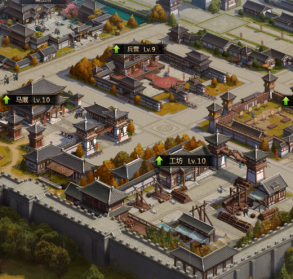 军事府可以提升武将带兵数量,兵营达到一定等级可以升级对应的兵种,分别是1级、5级、9级、13级、17级、20级、23级、26级、29级。建议主城达到对应等级时尽快提升兵营的等级,这样才能提升士兵的等级。